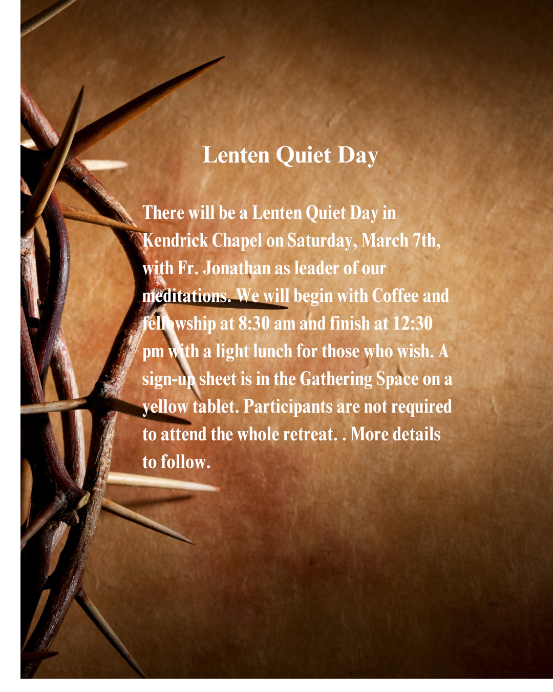 Check out this month's events to find out what's happening and how you can be involved. Explore the full list of upcoming ministries and services.